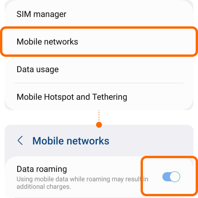 | ▸ | Toggle on your ‘Data roaming’ |